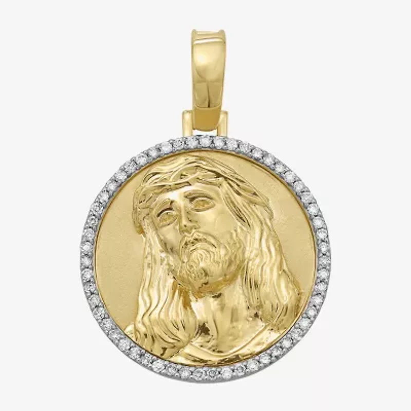 Jesus (F / Si2) Mens 1/2 CT. T.W. Lab Grown White Diamond 14K Gold Over Silver Round Pendant