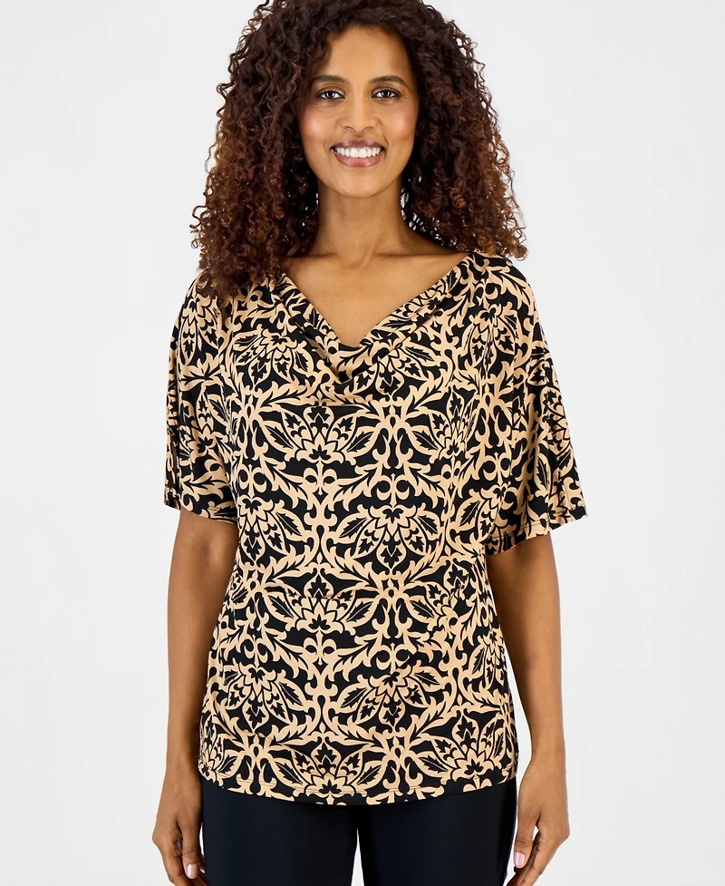 Jm Collection Petite Orchid Garden Cowl Neck Short-Sleeve Top, Macy's Exclusive