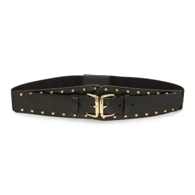 Define your waist with the JS Jessica Simpson Women’s Double Buckle Corset Style Dress Belt, designed with a flexible stretch‑back construction for all‑day comfort. The double buckle front with gold‑tone hardware and edgy studded accents adds a bold, modern touch that instantly elevates dresses, tunics, or high‑waisted skirts.