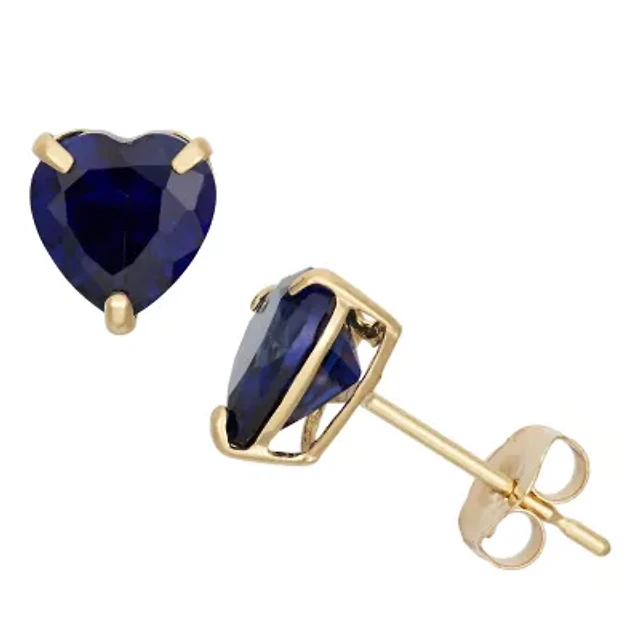 Lab Created Blue Sapphire 10K Gold 6.1mm Heart Stud Earrings