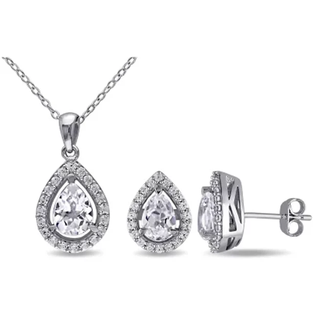Lab-Created White Sapphire Sterling Silver Earrings & Pendant 2-Piece Set