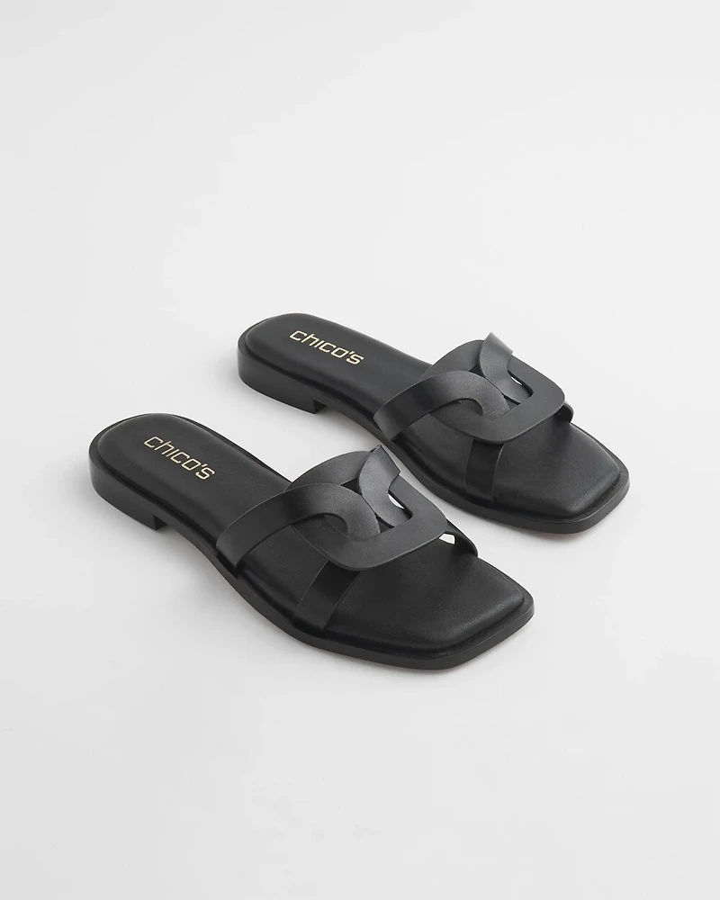 The new Leather Slides are made with quality and effortless style in mind. Crafted with a soft leather upper with PU hand-inked edges, these slip-on slides feature memory foam sock padding that offers an accurate fit and ease in each step. Brimming with style, they're perfect for pairing with cropped pants, jeans, or dresses.