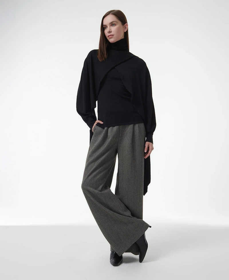 A knit you'll reach for all season long, thanks to its soft layers and easy shape. The cape-style sleeves fall into a loose silhouette with delicate tie details at the cuffs. Style it over tailored trousers.