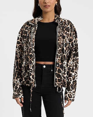 Leopard Ruffle Neck Adjustable Tie Utility Shacket