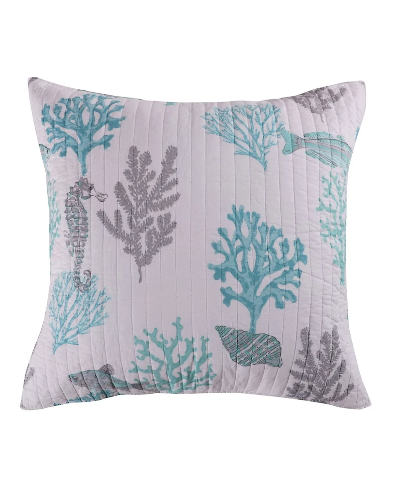 The Cape Coral Euro shams are the perfect addition to your decor. These euros feature a serene underwater scene in soft teals and grays that will tie your bedding ensemble together beautifully. Matching Cape Coral quilt and sham sets and decorative pillows sold separately.