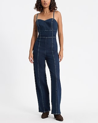Denim Back Cutout Hyper Sculpt Wide Leg Jumpsuit