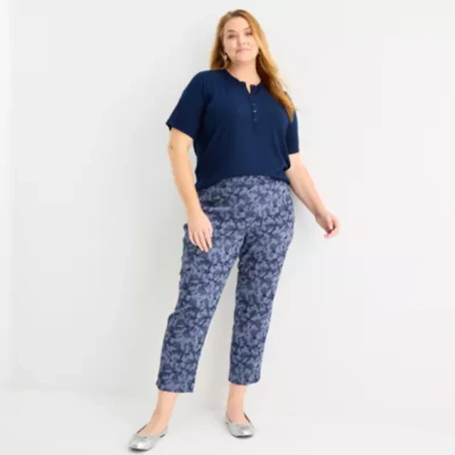 Liz Claiborne Womens Plus Ankle Mid Rise Pull-On Pant