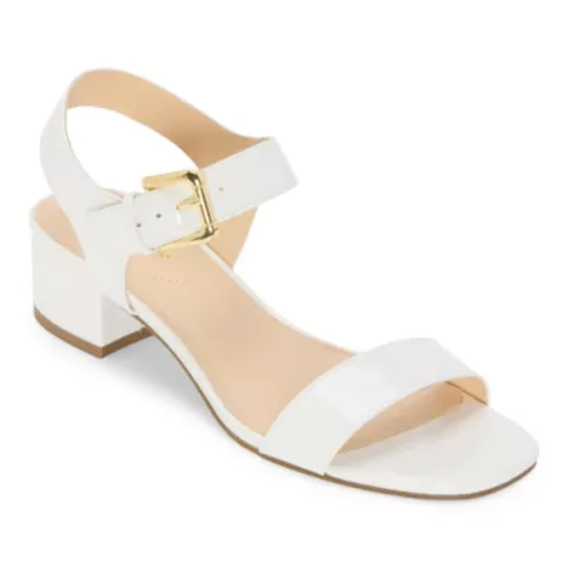 These Liz Claiborne women's Renny heeled sandals are all class. Made from smooth faux leather, this open-toe style has a 1.75-inch block heel, an adjustable ankle strap closure, and a memory foam insole for your comfort. Wear them with a sleek dress or tailored pants and a short-sleeve shirt.