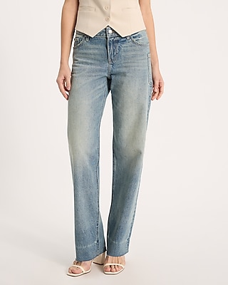 High Waisted Light Wash Ripped Raw Hem Relaxed Straight Jeans