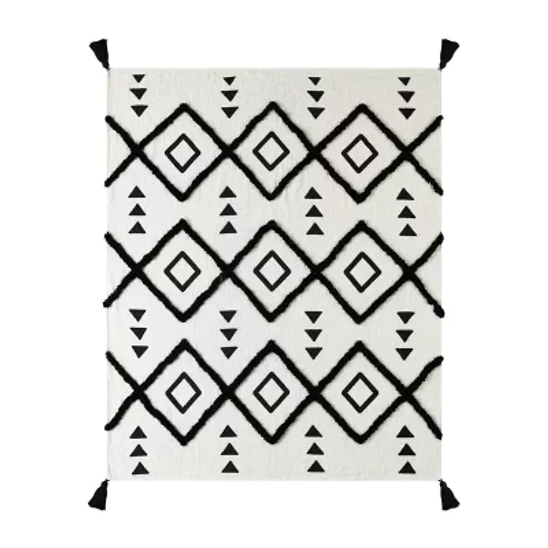 Designed with a balance of leisure and luxury in mind, this everyday accent merges well with multiple decor styles from modern too casual to bohemian to Scandinavian; this addition is a neutral necessity for your home or office. Stand alone or layer with other accents, this throw brings comfort and style to your space in black and white tones with rich textured tufting and finishing corner tassels. Bring dynamic design into your home by draping over a chair, sofa, couch, or bed. Crafted with care in India, each throw blanket is unique with its very own individuality.