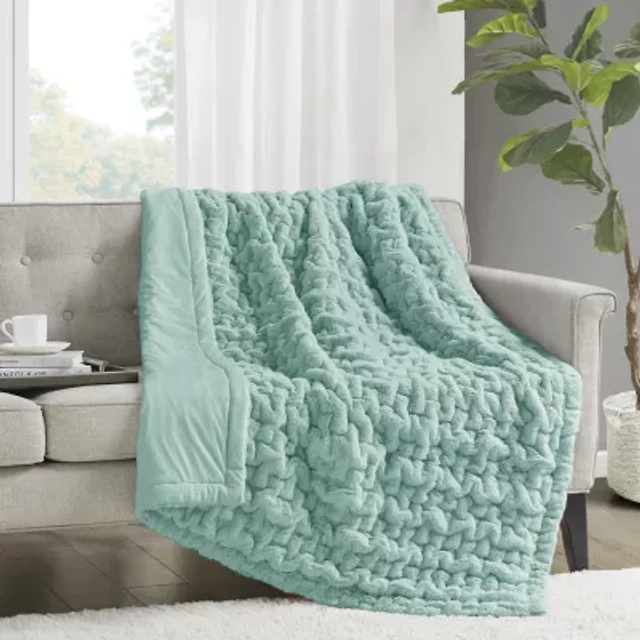 Madison Park Ruched Fur Throw