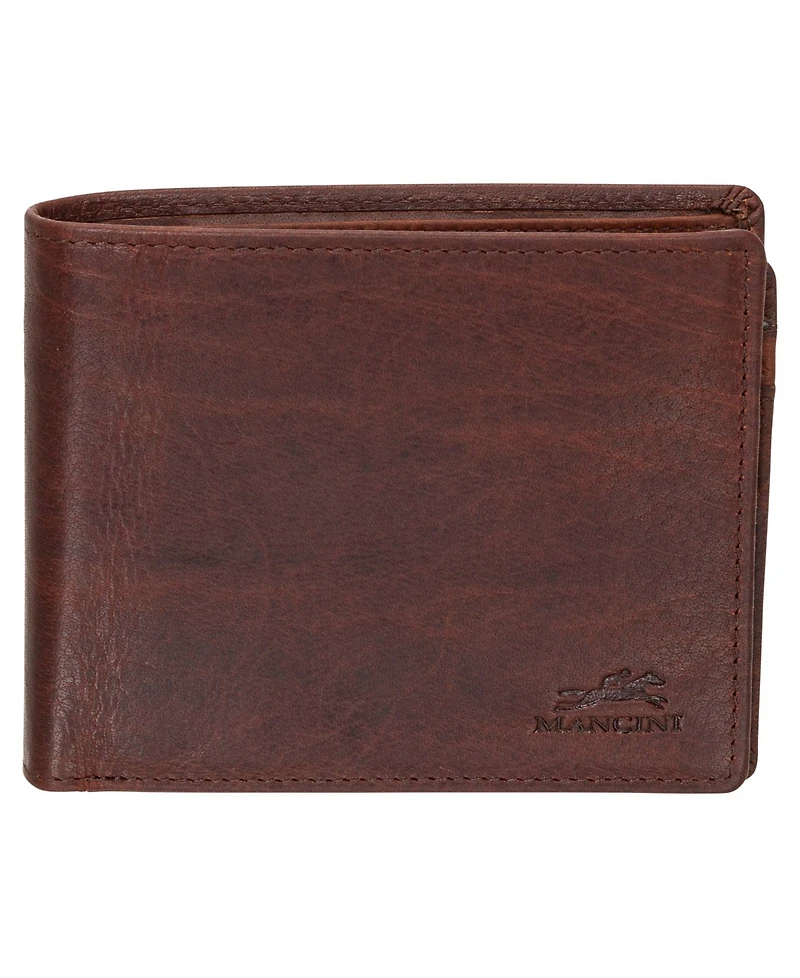 Mancini Men's Buffalo Rfid Secure Center Wing Billfold Wallet