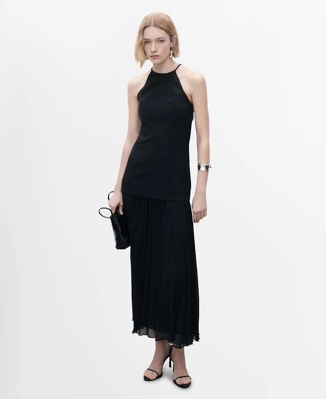 Mango Women's Combined-Fabric Long Dress