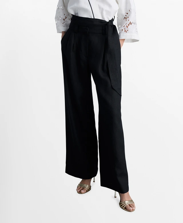 Mango Women's Striped Linen-Blend Bermuda Shorts