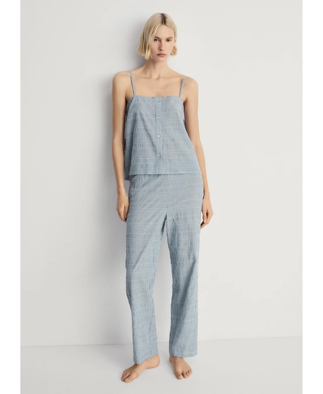 Mango Women's Cotton Striped Woven Seersucker Pajama Pants