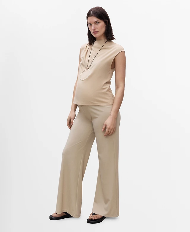 Mango Women's Elastic Waist Wide Leg Trousers