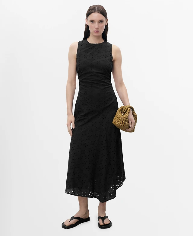 Mango Women's Openwork Embroidery Motifs Midi Dress