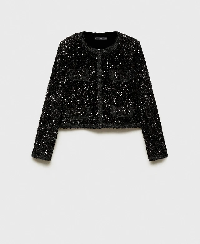 Mango Women's Pockets Detail Sequin Jacket