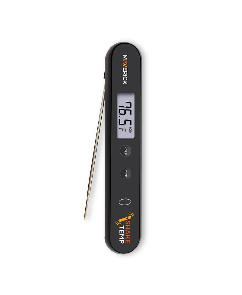 The Maverick Shake Temp Instant Read Thermometer needs no batteries-just shake for 2 seconds to power it. The large Lcd and hold function make it perfect for grilling, camping, or kitchen use.