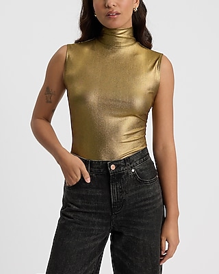 Metallic Gold Mesh Long Sleeve Bodysuit