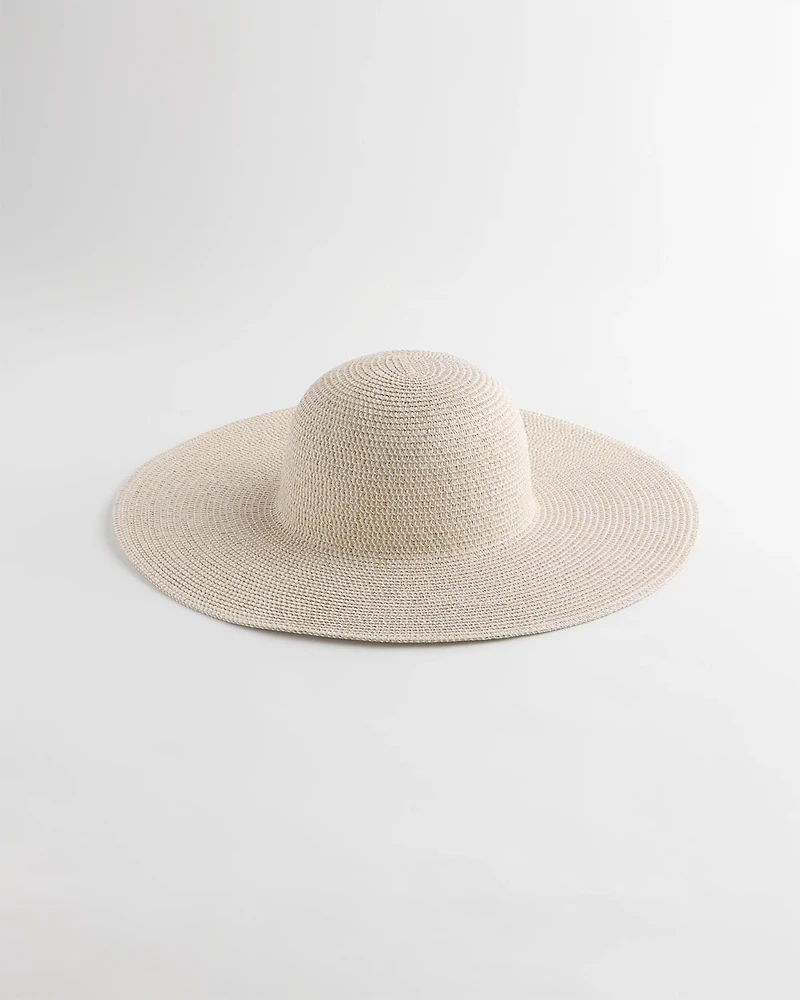 Beach chic style is calling. Inspired by glistening days at the beach, don't leave home without this lurex-infused Metallic Straw Sun Hat this season.