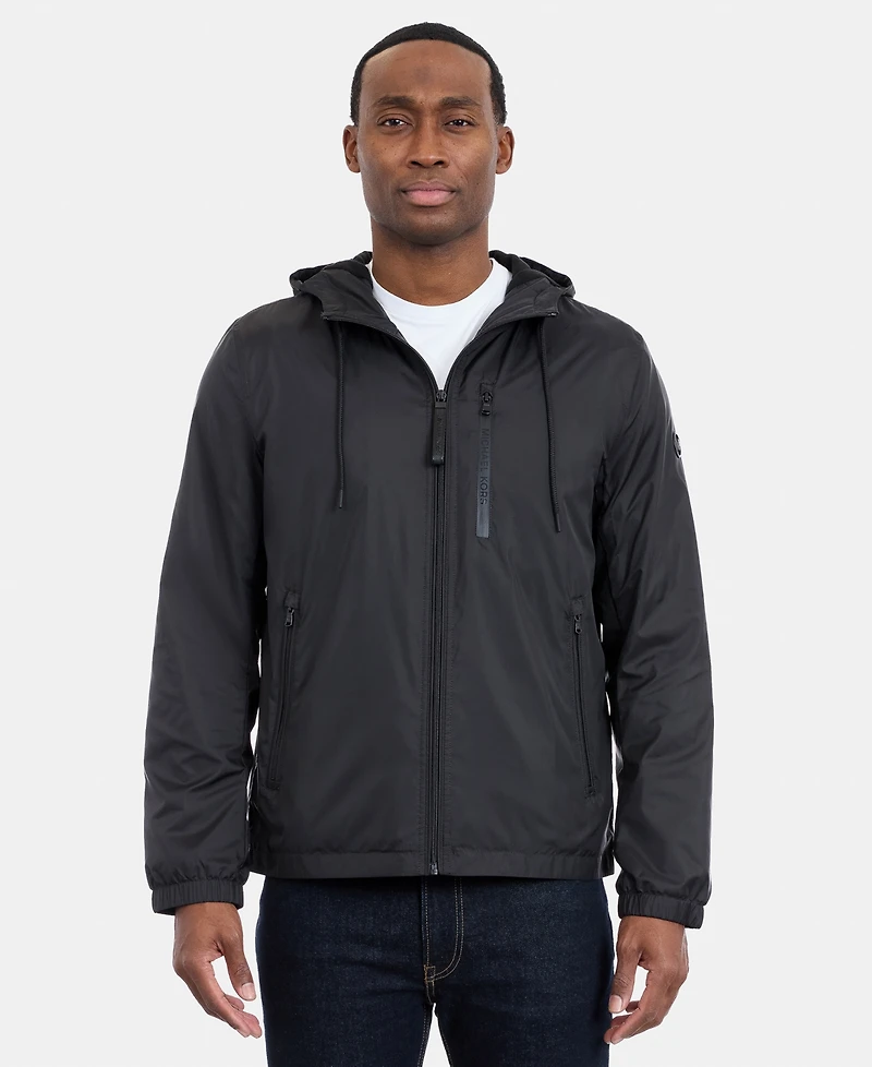 Crafted for versatile city living, this Michael Kors windbreaker jacket features a front zipper closure and an attached adjustable hood for effortless wear. The regular fit allows ease of movement from commuting to weekend outings.