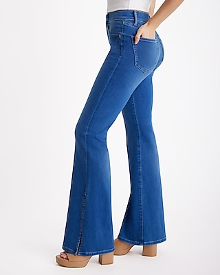 Mid Rise Dark Wash Slit FlexX '70s Flare Jeans