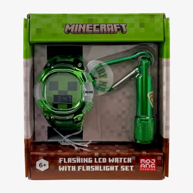 The Minecraft Kids Flashing LCD Watch with the Matched Green Color Flashing Light Keychain Set – MIN40147JC is the perfect accessory for young Minecraft fans who want fun, function, and standout style in one exciting set. Featuring a bright, easy-to-read LCD digital display with flashing light effects, this Minecraft kids watch brings the iconic Minecraft look to life while making telling time engaging and interactive. The included matching green flashing light keychain adds extra value and collectible appeal, making this set ideal for everyday wear or gifting.