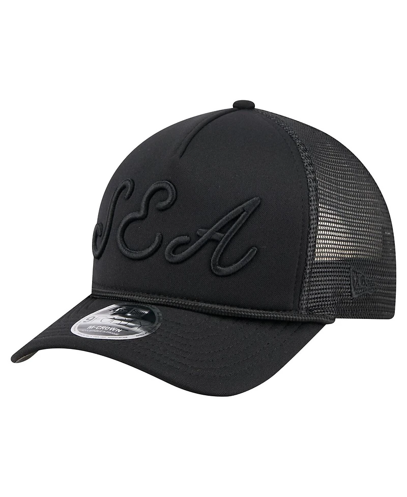 New Era Men's Black Seattle Mariners City Initial 9FORTY A-Frame M-Crown Adjustable Trucker Hat in Ponce, PR