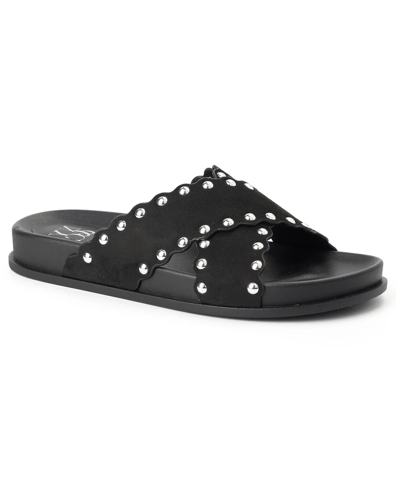 Barnett Sandals Add a touch of rock-and-roll flair to your summer wardrobe with these chic slide sandals. Featuring a bold scalloped edge and metallic stud detailing, they offer the perfect balance of grit and grace.