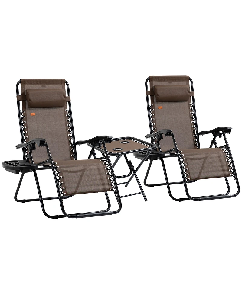 Outsunny Zero Gravity Chair Set with Folding Table & Cup Holder Trays,
