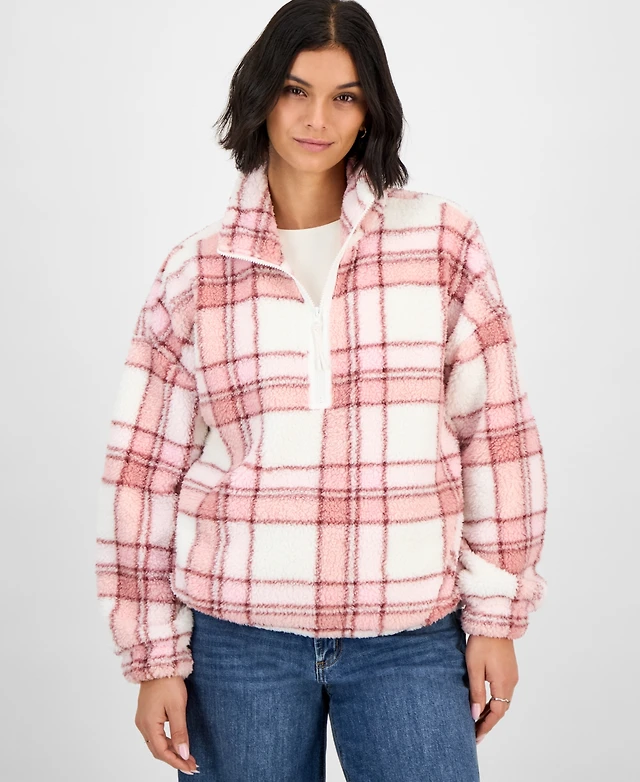 Planet Heart Juniors' Printed Quarter-Zip Sherpa Jacket