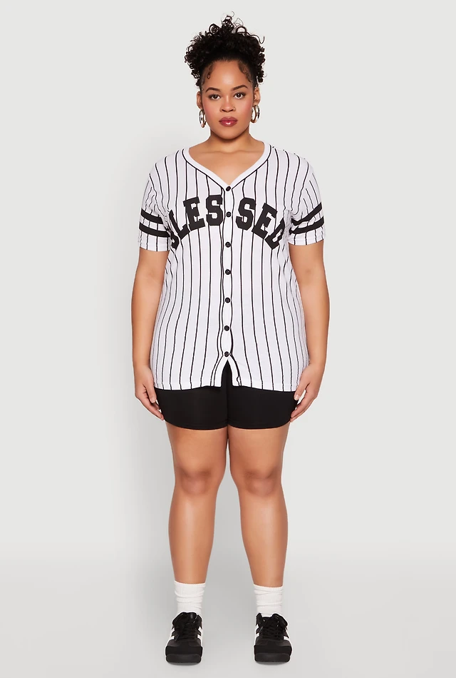 Plus Blessed 1 Pinstripe Baseball Shirt