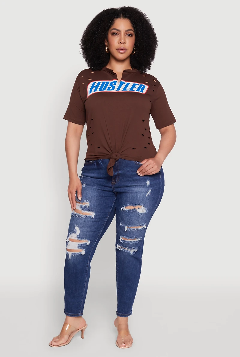 Plus Hustler Graphic Short Sleeve Knot Front Tee