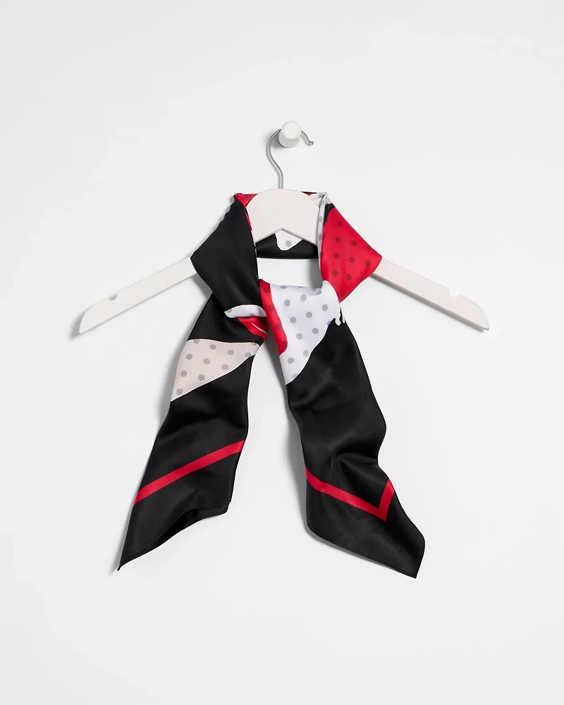 This two-sided accessory can serve many purposes. Wear as a neckerchief, a style that's brought class to women's wardrobes dating back from time immemorial.