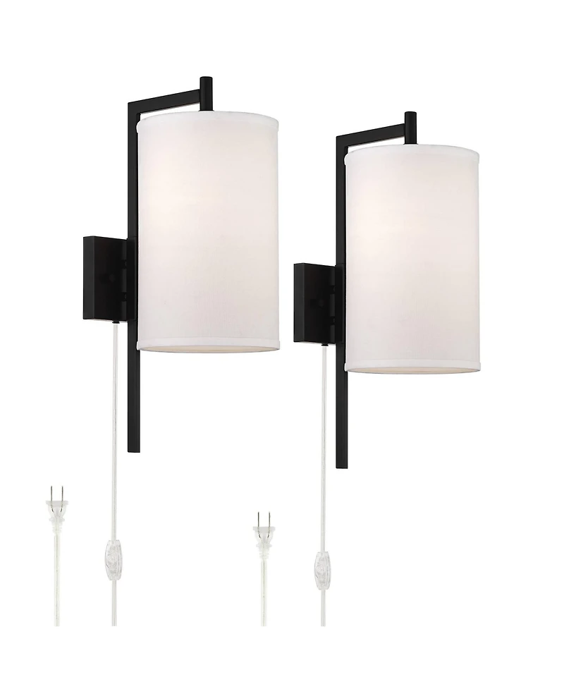 Possini Euro Design Bixby Modern Wall Lamps Set of 2 with Smart Sockets Plug-In 8" Fixture Fabric Shades for Bedroom Reading in Ponce, PR