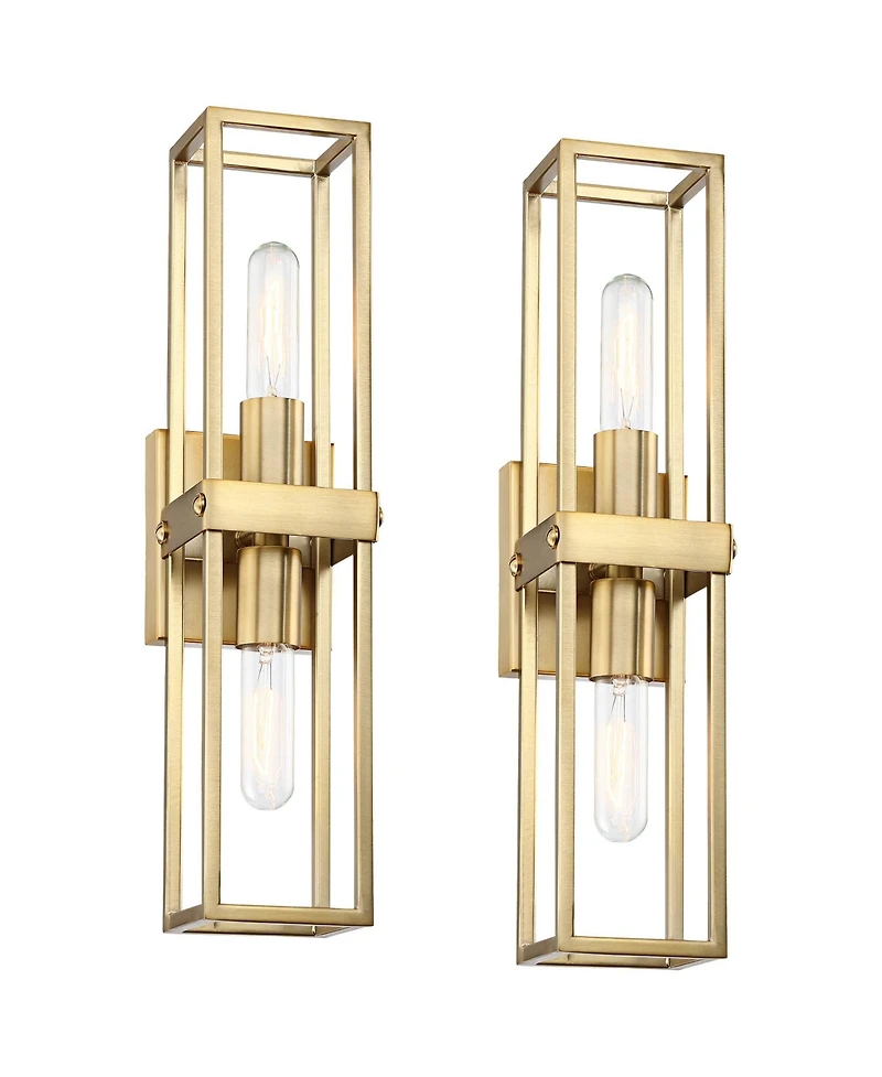 Possini Euro Design Fabian Modern Wall Light Sconces Set of 2 Warm Brass Hardwired 4" 2-Light Fixture Open Rectangular Frame for Bedroom in Ponce, PR