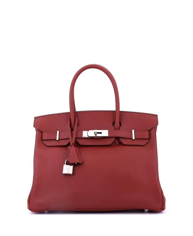 Pre-Owned Hermes Birkin 30 Handbag Red Jonathan with Palladium Hardware