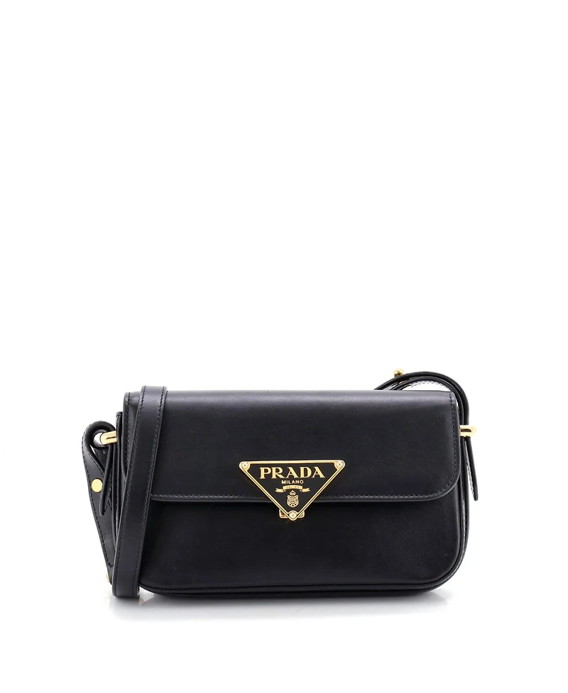 Pre-Owned Prada East West Embleme Triangle Logo Flap Bag Soft Calfskin