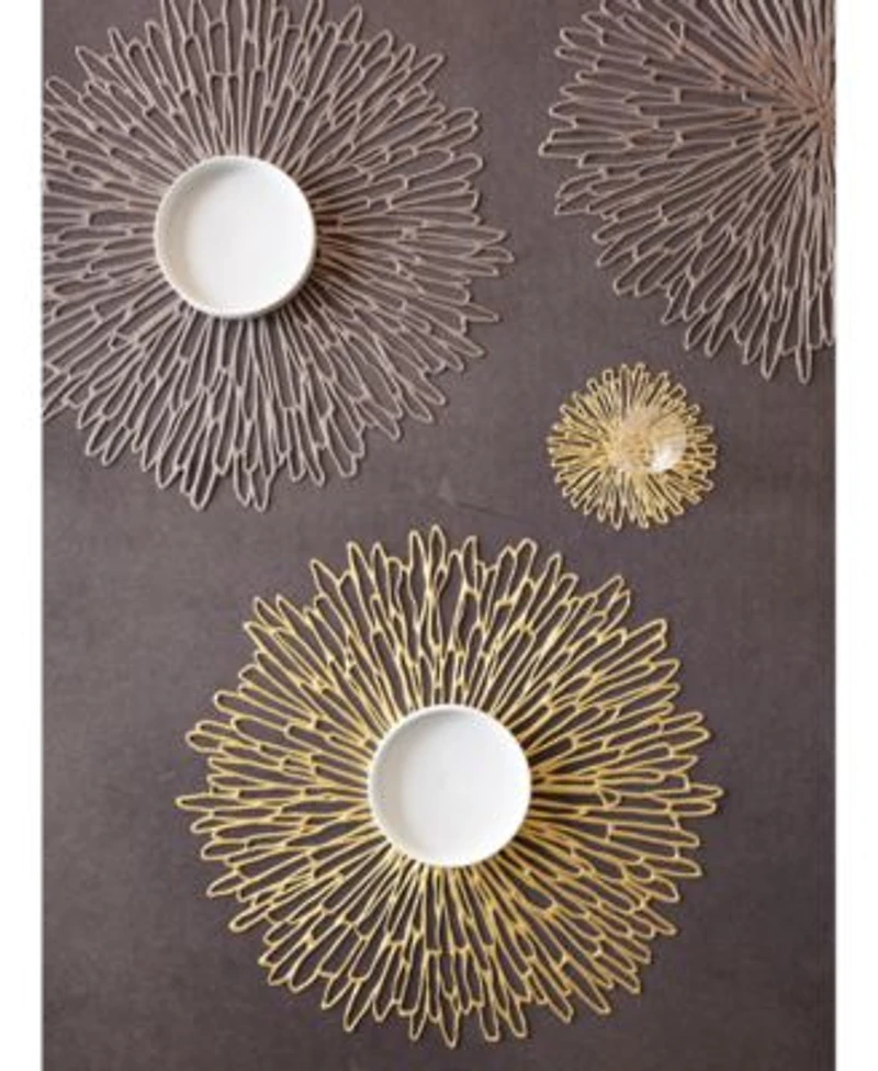 Combining the organic exuberance of a chrysanthemum with the graphic refinement of a contour line sketch and a modern palette of metallic hues, Bloom is a fresh interpretation of florals. This flexible openwork placemat can also function as a charger, acting as a decorative base for whatever is placed on top. Part of our best-selling offering of pressed designs, it is delicate in appearance yet surprisingly resilient: a contemporary take on the ancient craft of lace-making. Suitable for indoor and outdoor use. Formulated without phthalates. Made in Taiwan.