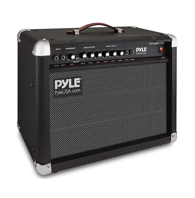 Elevate your sound experience with the Pyle 40W Portable Electronic Guitar Amplifier. This amplifier features heavy-duty wood construction and a powerful combination of 6'' and 8'' high-definition speakers that deliver rich, clear audio. With adjustable volume, bass, middle, and treble controls, you can tailor your sound to fit any setting. Its lightweight design and carry handle make it incredibly portable, so you can take your music wherever you go. Enjoy added versatility with a headphone jack and output jack for connecting various devices. The digital reverb function enhances your audio quality, while the power switch with an Led indicator ensures you know when your amp is on. Perfect for musicians on the move, this amplifier combines durability with superior sound.