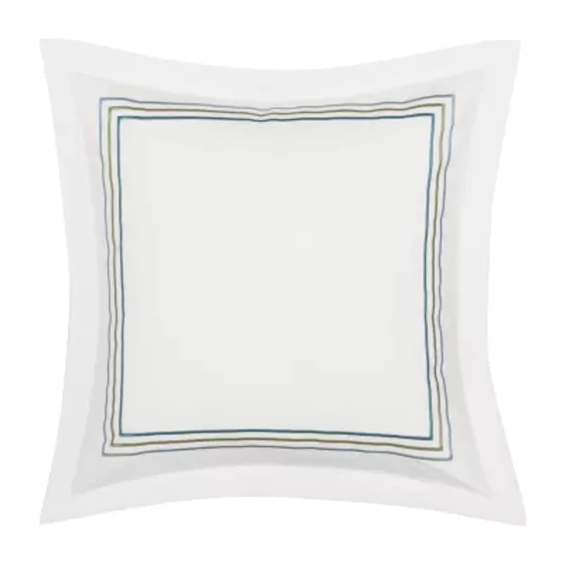 Refine your bedding with the Mayfield Euro Sham, an accent piece that blends a sleek border design with elegant charm. This ultra soft sateen cotton pillow features an embroidered border in shades of blue and green with a flange trim and hidden zipper closure. Whether placed on your bed for coordinated charm, this throw pillow exudes tasteful cottage decor.