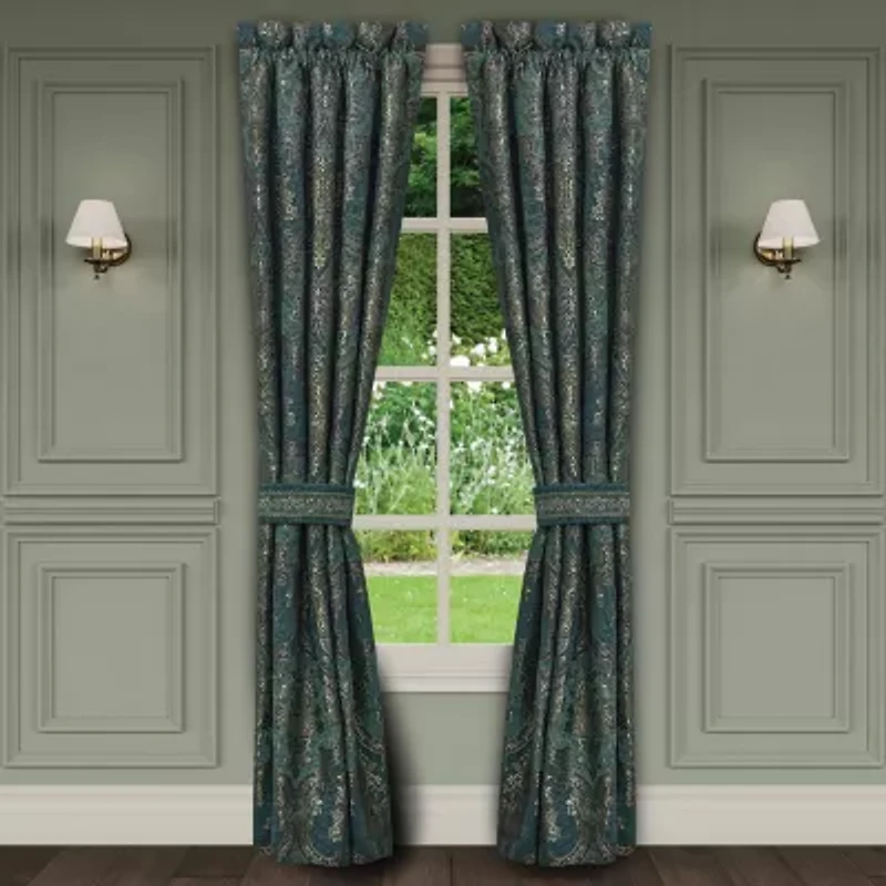 The Nadine Window Panel Pair showcases a highly detailed woven damask design in a stunning teal, green, and gold colorway. Each panel is lined to keep your room shaded and comfortable and the weighted hems allow the panels to drape beautifully. The luxurious panels include matching tiebacks to complete the fresh open airy look. Pair these panels with the Nadine Window Valance and Bedding collection to complete your bedroom decor.