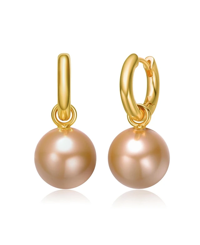 Rachel Glauber Round Colored Pearl Drop Hoop Earrings