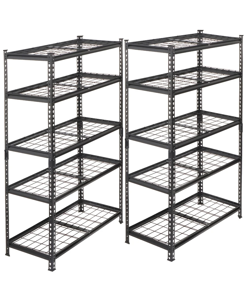 This 2-Piece 5-Tier Storage Shelves set is a heavy-duty steel shelving unit designed for high-capacity organization. Each unit offers 5 tiers of adjustable storage with a strong load-bearing structure, providing a total weight capacity of 2250 lb. Built with durable steel, it delivers reliable stability and long-lasting performance, making it an ideal storage solution for garages, warehouses, basements, workshops, and industrial spaces.