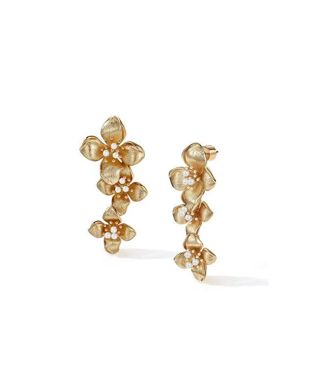 Retro Chic Iris Blossom Pearl Earrings