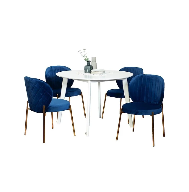 Roundhill Furniture Amoa Contemporary 5-Pc Dining Set, White Round Dining Table with 4 Chairs, Blue