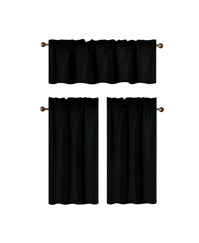 Rt Designers Collection 100% Polyester Gibson Solid 3 Piece Kitchen Curtains Valance and Tiers Set 54" x 18