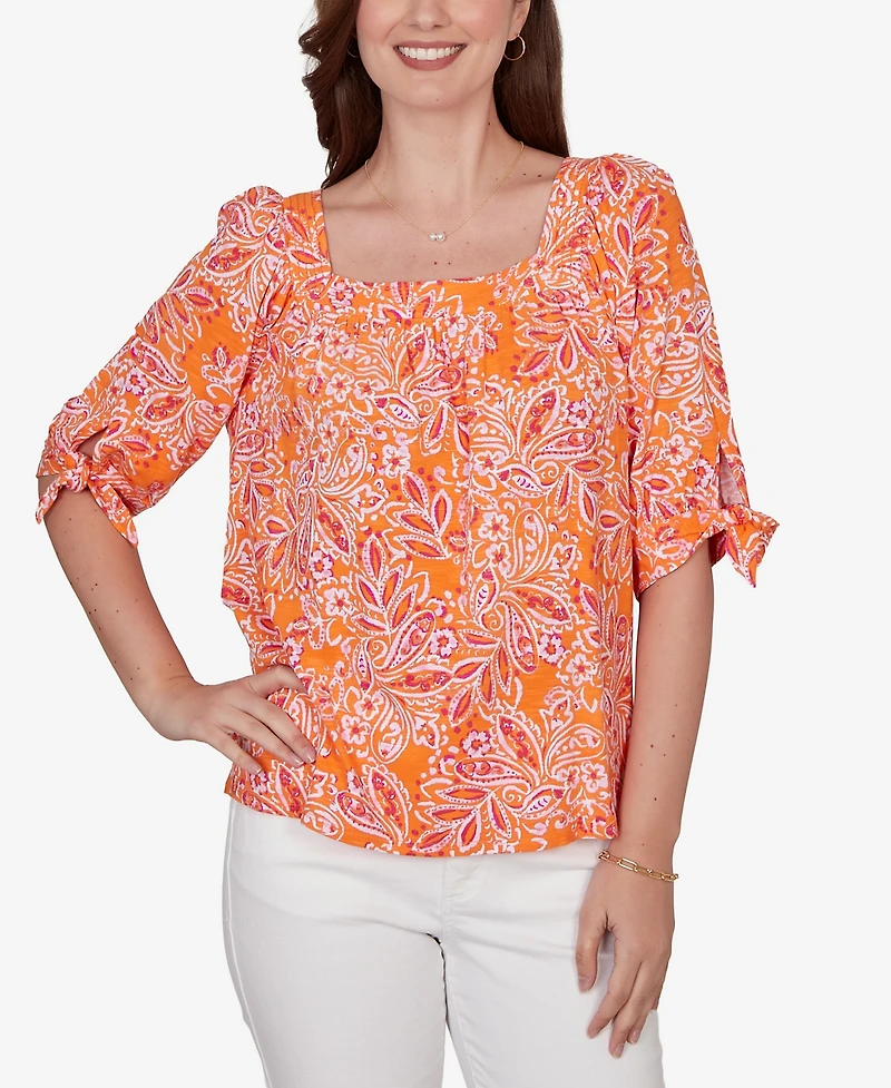 Ruby Rd. Petite Paisley Print Tie Sleeve Knit Top in Ponce, PR