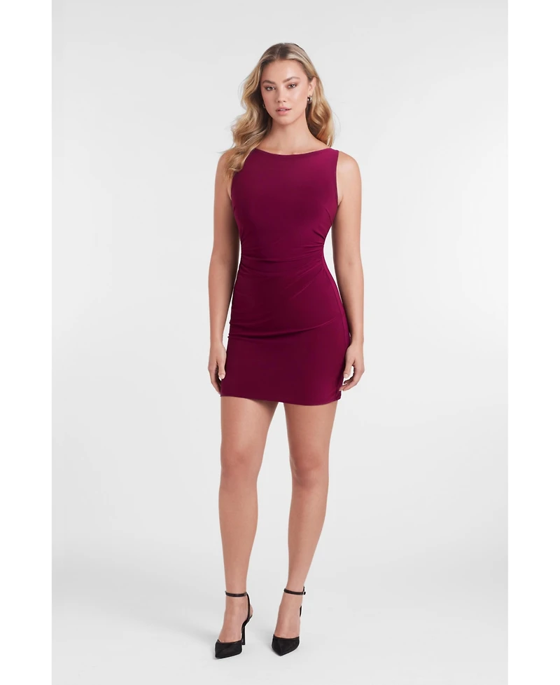 S3 Apparel Women's Sculpting Shapewear Shirred Boat Neck Solid Mini Dress in Ponce, PR